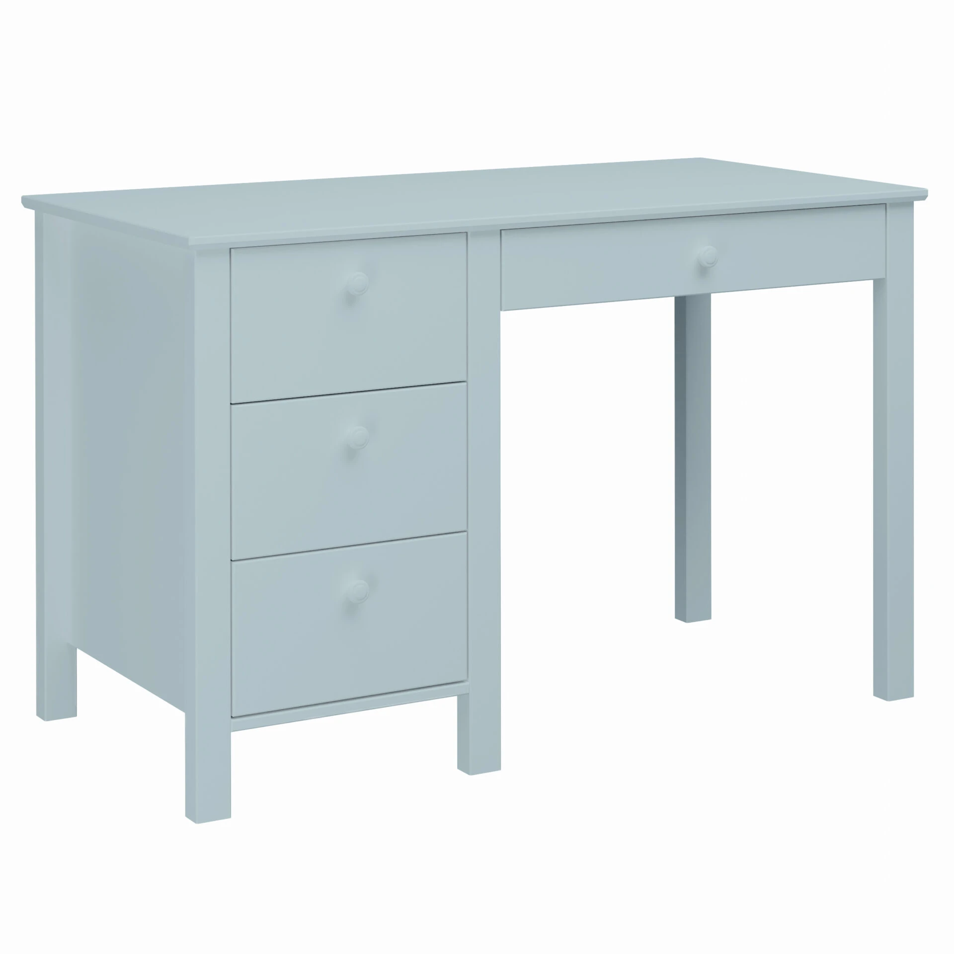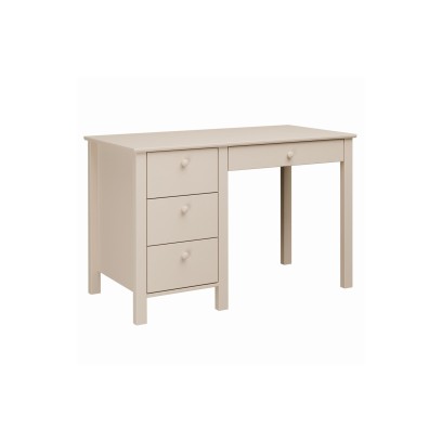 Biurko 4 szuflady Collet ma gładkie fronty, delikatne krawędzie i charakterystyczne, okrągłe uchwyty, które podkreślają skandynawski charakter mebla. Dostępne kolory: