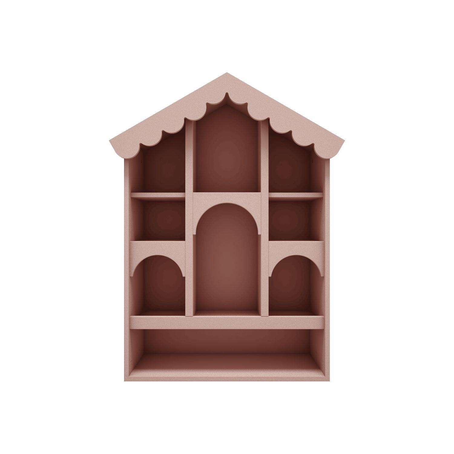 Domek dla lalek Babushka róż naturalny to wyjątkowy mebel, który łączy zabawkę, dekorację i funkcjonalny regał w jednym. Jego pastelowy róż naturalny (NCS S 2020-Y80R), falbanki i łukowe wycięcia sprawiają, że wygląda jak mała rezydencja w stylu vintage — subtelna, elegancka i pełna uroku.