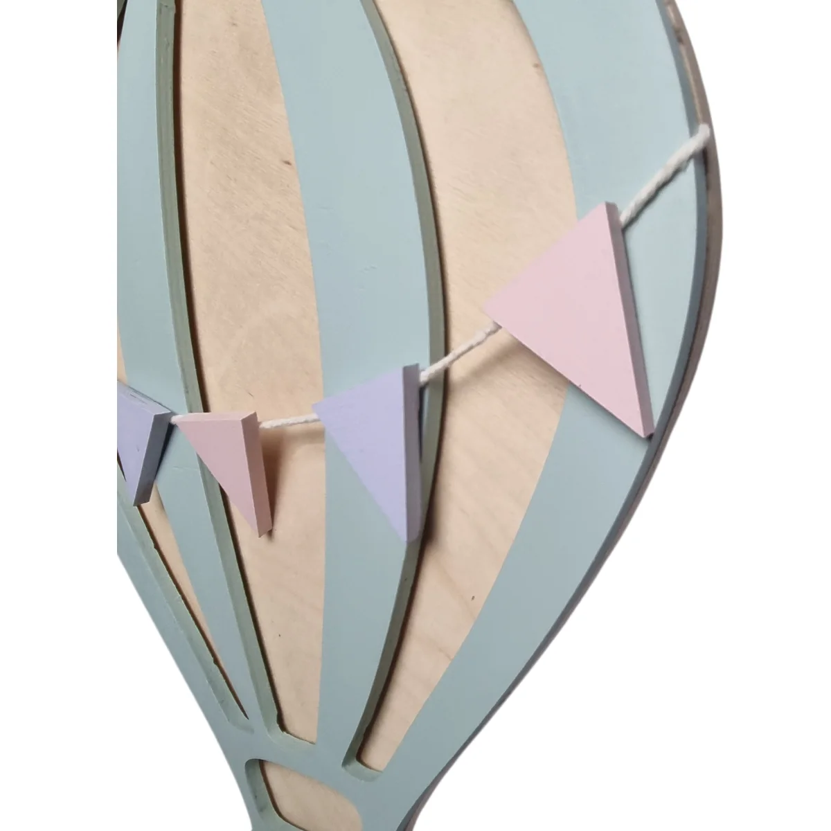 Motyw balonu z pastelowymi chorągiewkami przywołuje na myśl beztroskie podróże i bajkowe opowieści. Ciepłe, delikatne światło otula wnętrze, dając dziecku poczucie spokoju i bezpieczeństwa. Dzięki temu zasypianie staje się łatwiejsze, a wieczorne czytanie bajek zyskuje wyjątkową oprawę.
