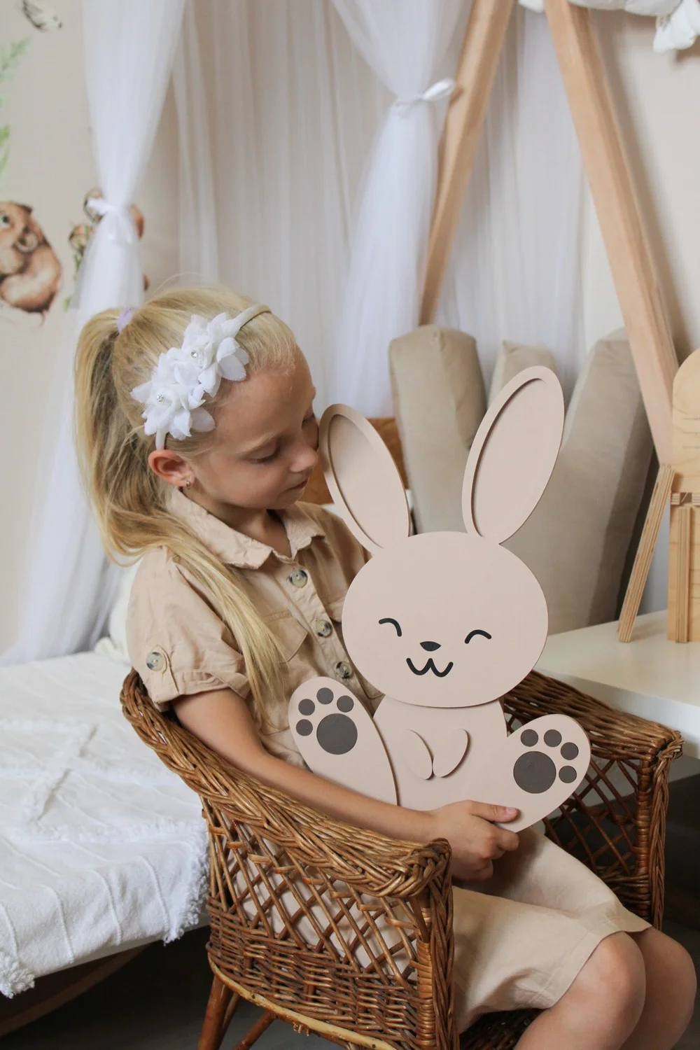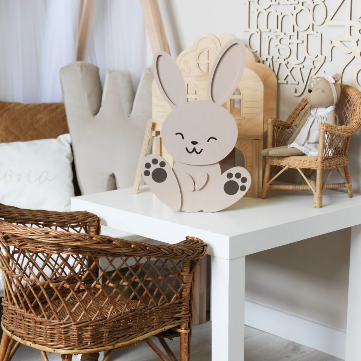 Uroczy wygląd – wesoły króliczek z długimi uszami wprowadza do pokoju radość i bajkowy klimat.