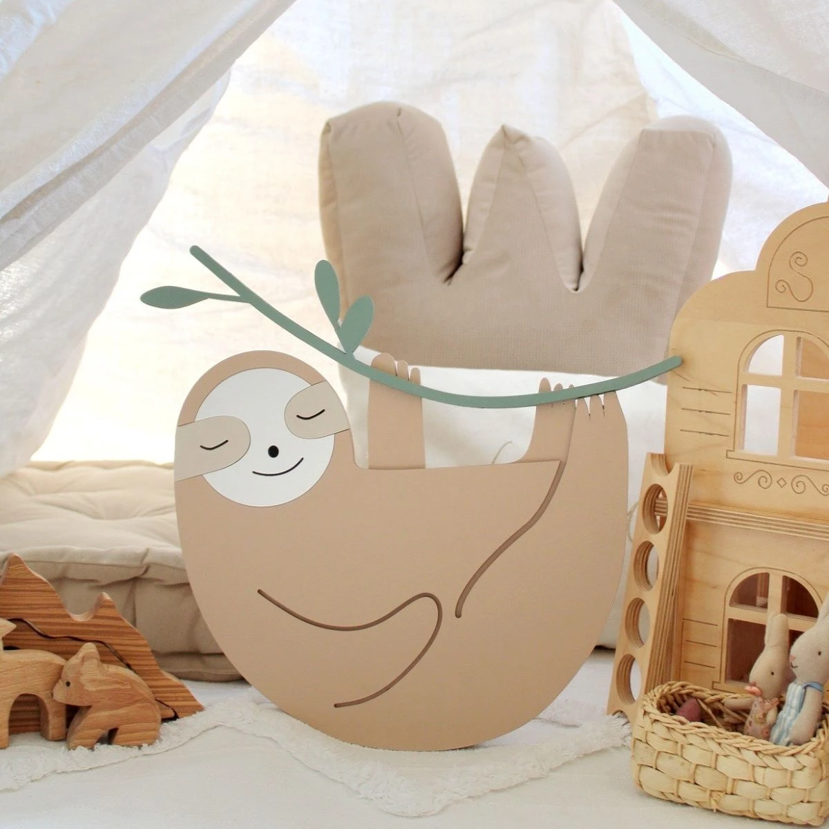 Wieczór w pokoju malucha to czas wyciszenia i przygotowania do snu. Lampki do pokoju dziecięcego pomagają stworzyć atmosferę bezpieczeństwa, a ta urocza drewniana lampka LED w kształcie leniwca zamieni każdy wieczór w pełen spokoju rytuał zasypiania.