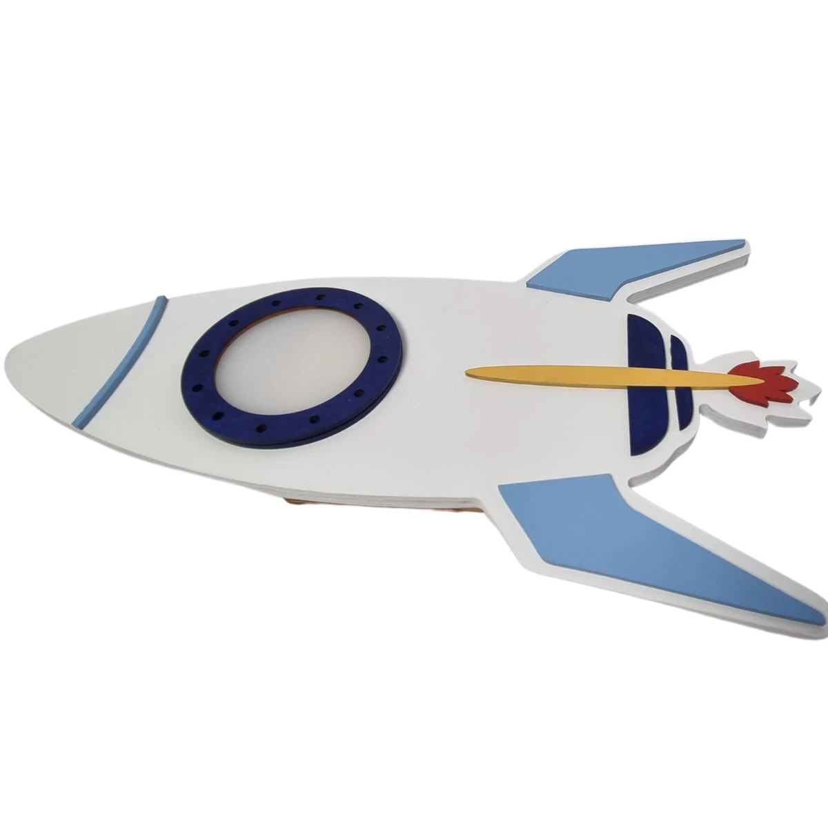 Drewniana lampka LED Rakieta biało-niebieska – styl i światło w dziecięcym pokoju