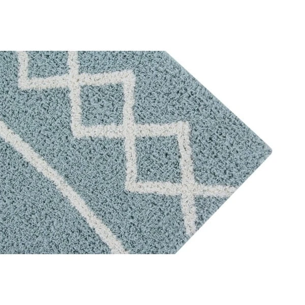 Dywan bawełniany w geometryczny wzór, który świetnie pasować będzie do pokoi młodzieżowych, zarówno dla dziewczyn jak i chłopców. Przydymiony niebieski to jeden z modnych kolorów, który podkreśli wystrój w stylu vintage i nowoczesnym stylu skandynawskim. Ręcznie robiony dywan z bawełny i naturalnych barwników zachwyca miękkością, lekkością i elastycznością. Dywan w romby można prać w pralce dzięki czemu zachowa świeżość i kolor przez długie lata.
