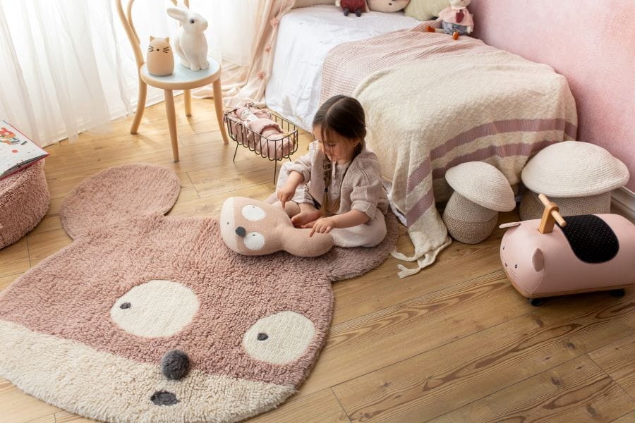 Dywan wełniany do pokoju dziecięcego dziewczynki, zainspirowany postaciami hiszpańskiego artysty Edgara Plansa. Uroczy dywan dla dziewczynki w ciepłych odcieniach różu z wyjątkowym elementem - pomponem jako nos. Dywan w kształcie superbohaterki Miss Mighty Mouse chętnie zagości w pokojach wielu dziewczynek, wprowadzając do nich radosny i przytulny nastrój. Dywan wełniany wyposażony jest w bawełnianą podkładkę antypoślizgową, a całość starannie zapakowana w praktyczną bawełnianą torbę. Dywan do prania w pralce.