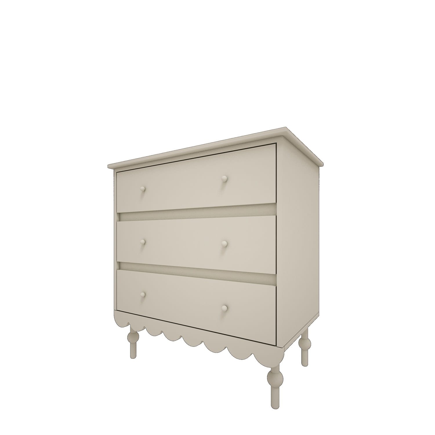 Dzięki trzem pojemnym szufladom z funkcją cichego domyku, komoda zapewnia wygodne miejsce na ubranka, pieluszki i akcesoria niemowlęce. Idealnie sprawdzi się również w pokoju przedszkolaka lub starszej dziewczynki jako praktyczna przestrzeń do organizacji.