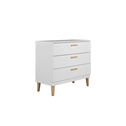 Biała kolorystyka komody sprawia, że wnętrze wydaje się jaśniejsze i bardziej przestronne. To idealne tło dla kolorowych dodatków, a jednocześnie baza do aranżacji w duchu stylu skandynawskiego – funkcjonalnego i przyjaznego dla dziecka.