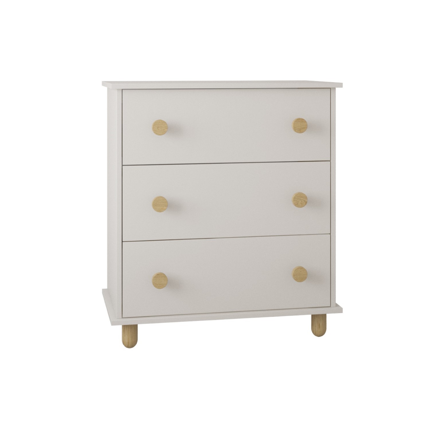 Ciepłe drewniane nóżki i uchwyty z buku dodają komodzie lekkości i idealnie pasują do innych mebli dziecięcych w stylu skandynawskim – regału, łóżka czy biurka Lilo.