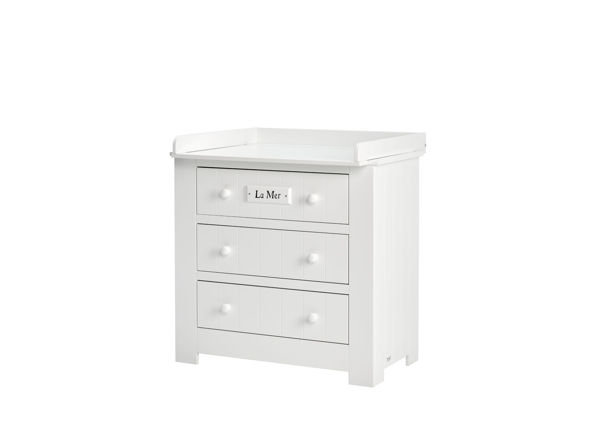 Na komodzie można zamontować demontowalną nakładkę do przewijania, która tworzy praktyczną strefę pielęgnacji.