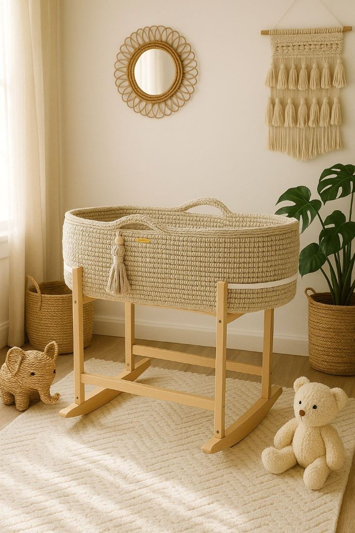 Bawełniany kosz Mojżesza Beige – neutralne łóżeczko od pierwszych dni