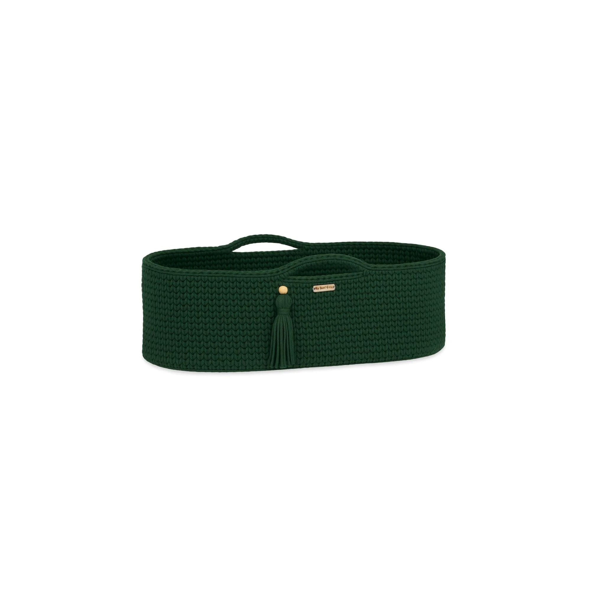 ręcznie pleciony bawełniany kosz Mojżesza Dark Green z ozdobnym chwostem,