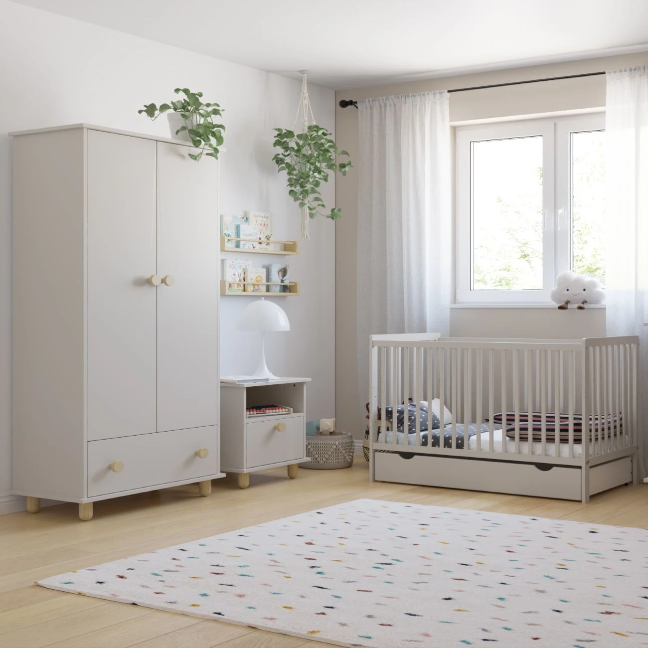 Dzięki stonowanej kolorystyce łatwo dobrać pościel, ochraniacz czy baldachim – niezależnie od tego, czy planujesz pokój dziewczynki, chłopca, czy wnętrze neutralne.