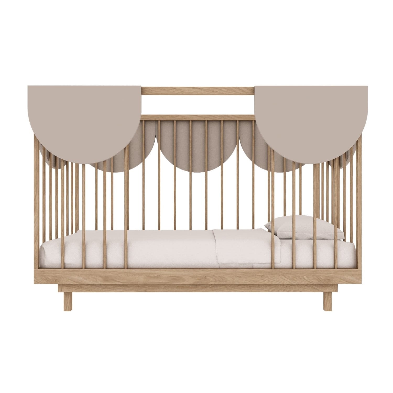 Łóżeczko Bloom 140×70 kaszmir/dąb – bezpieczne łóżeczko 3w1, które rośnie razem z dzieckiem