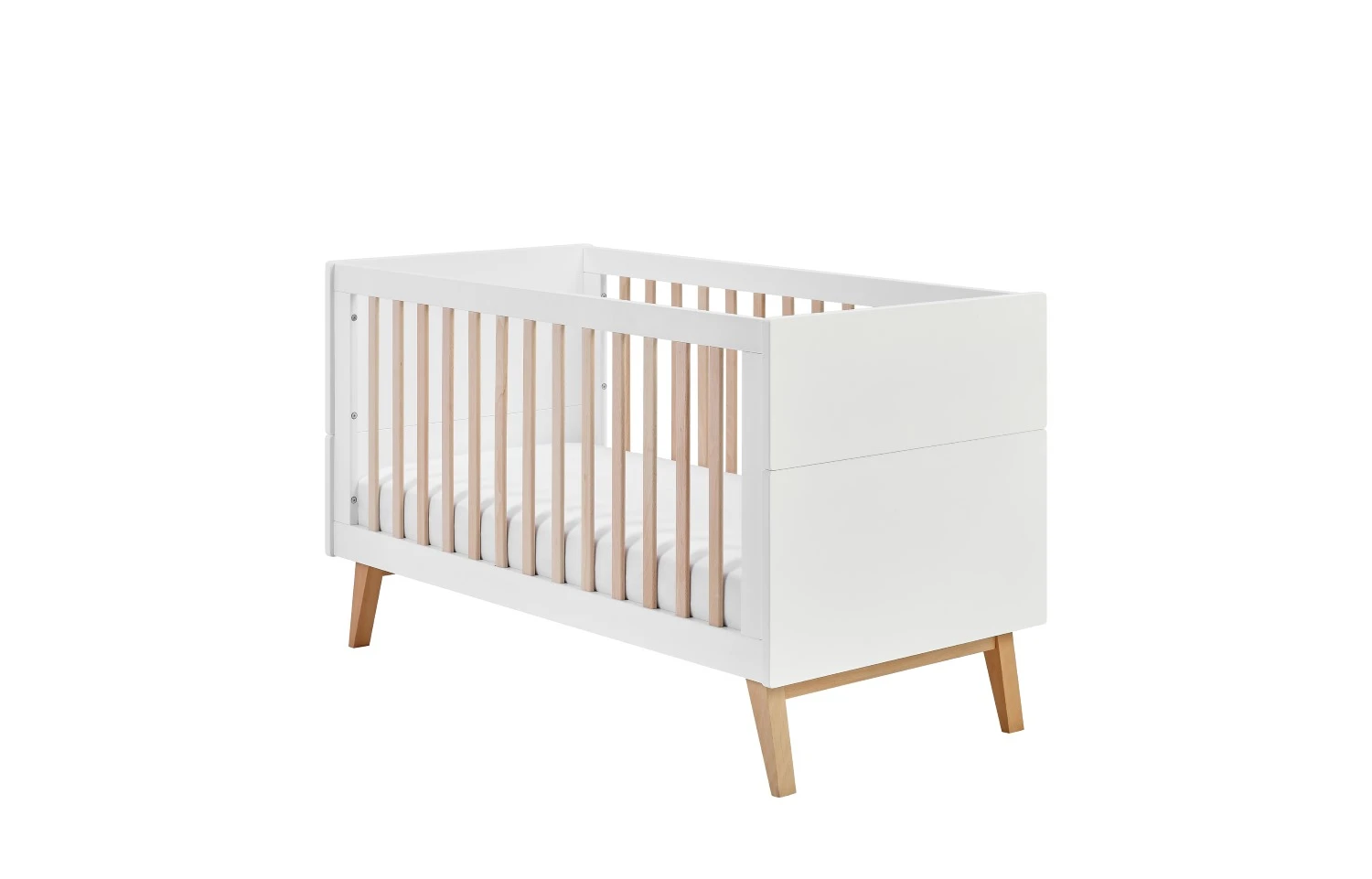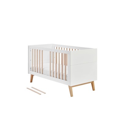 Czysta biel w połączeniu z naturalnym bukiem to charakterystyczne połączenie kolekcji Swing. Wysokie, smukłe nogi nadają łóżeczku lekkości i nowoczesnego charakteru, a ich konstrukcja (22 cm wysokości) ułatwia sprzątanie – bez problemu podjedzie pod nie robot sprzątający. Dzięki prostej formie mebel doskonale wpisuje się w aranżacje nowoczesne, skandynawskie i klasyczne.