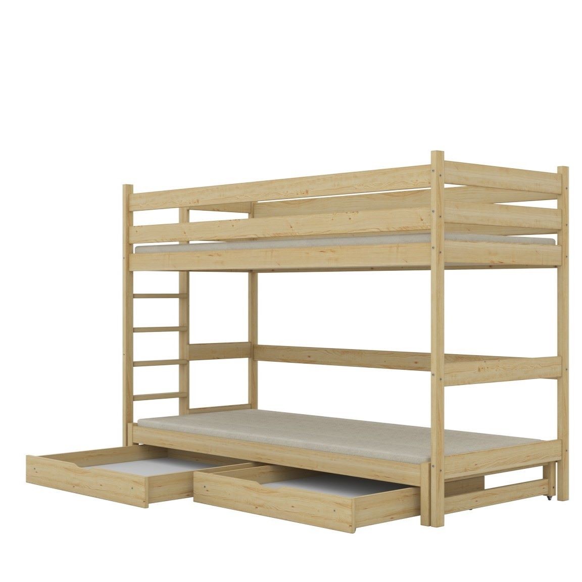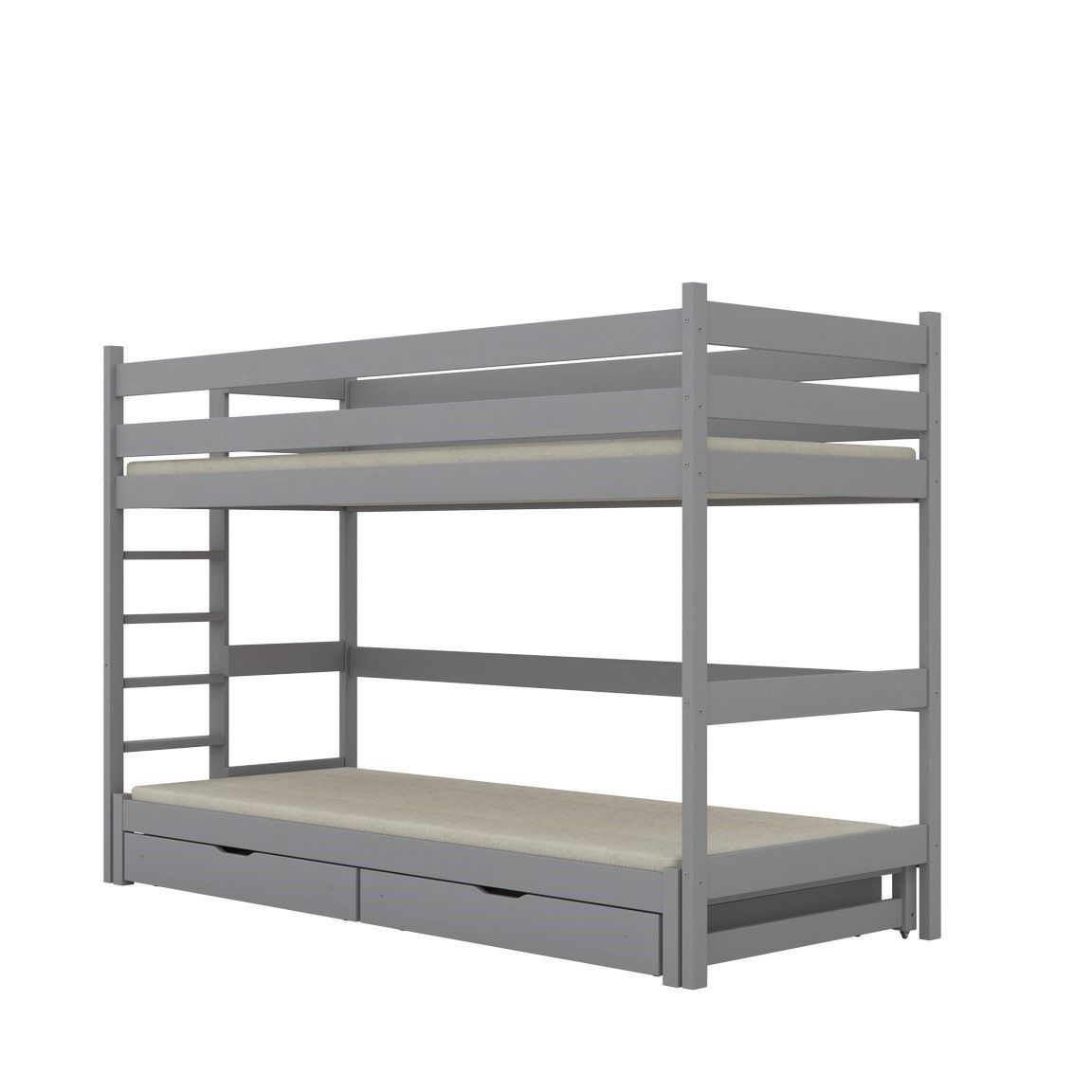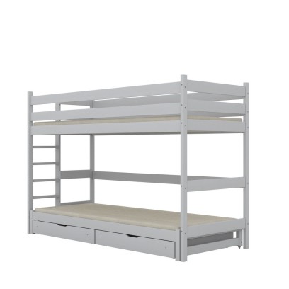Konstrukcja łóżka wykonana jest z litego drewna sosnowego, które zapewnia stabilność i trwałość przez długie lata. Wysokie barierki ochronne gwarantują spokojny sen, a drabinka zamontowana z boku umożliwia łatwe i bezpieczne wejście na górne łóżko. Każdy element został starannie wykończony, co sprawia, że Nubo jest nie tylko solidne, ale też przyjemne w dotyku i bezpieczne dla dzieci.