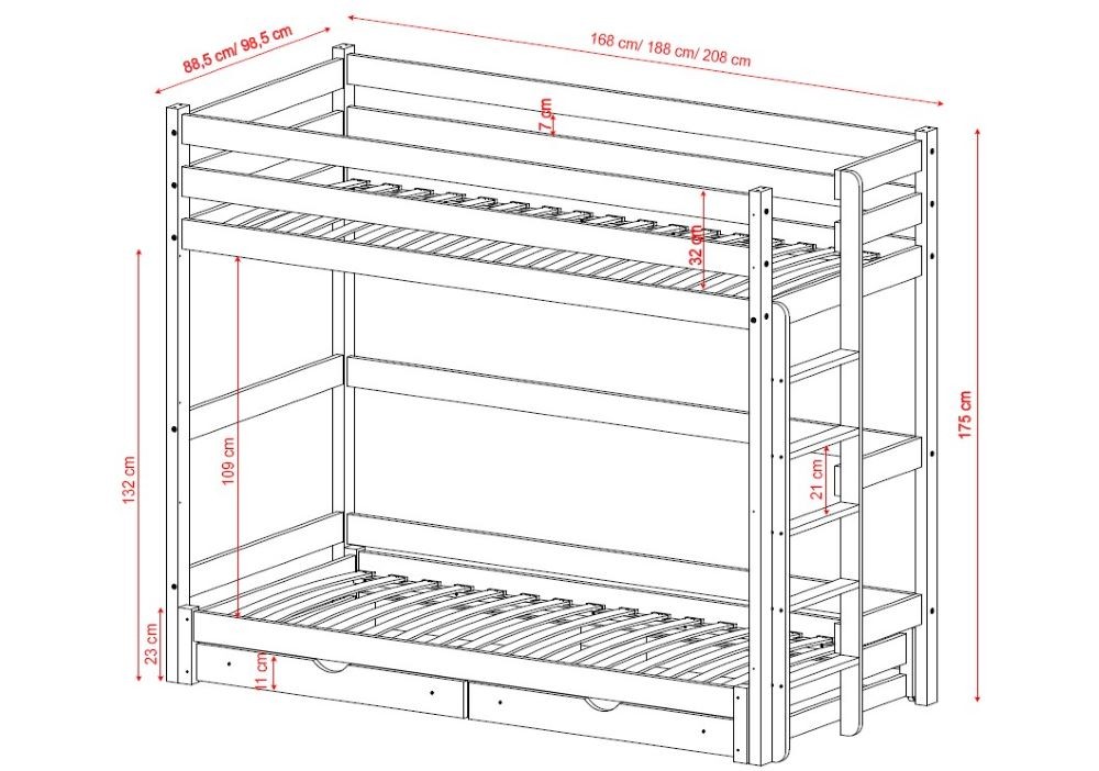Maksymalne obciążenie każdego łóżka: 100 kg