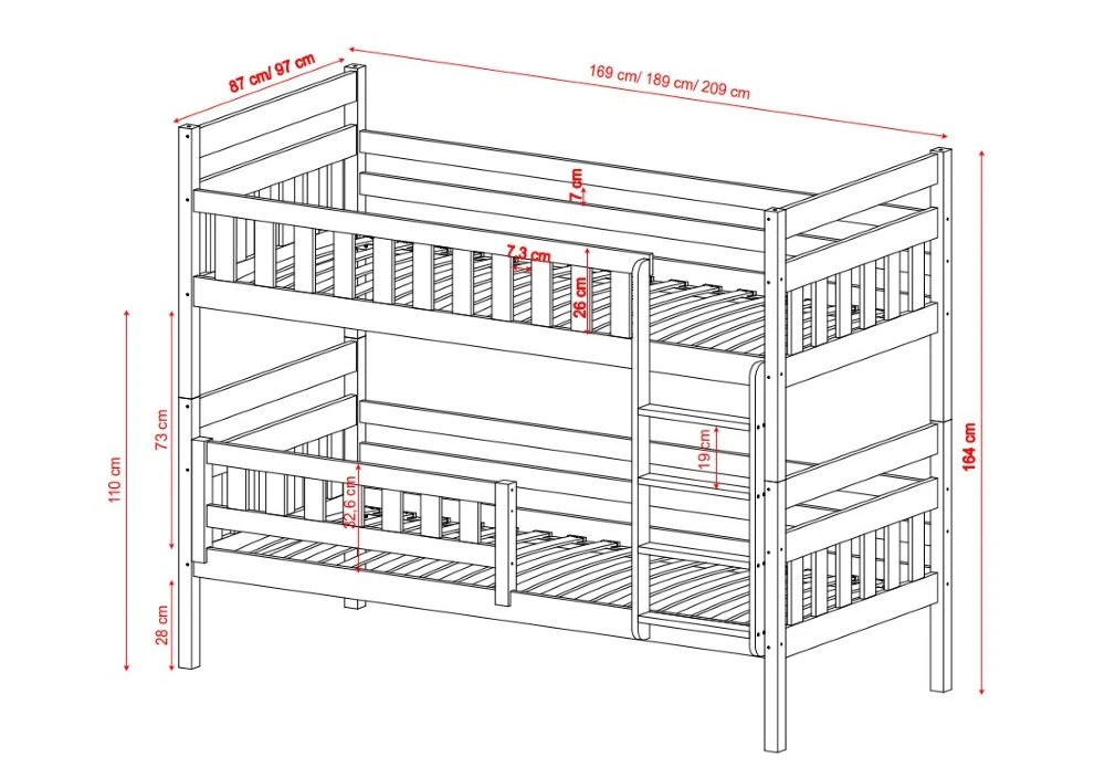 Dzięki szerokiemu wyborowi łatwo dopasujesz łóżko do metrażu pokoju i potrzeb użytkowników. Drewno sosnowe najlepiej czyścić miękką, suchą ściereczką, bez użycia agresywnych detergentów.