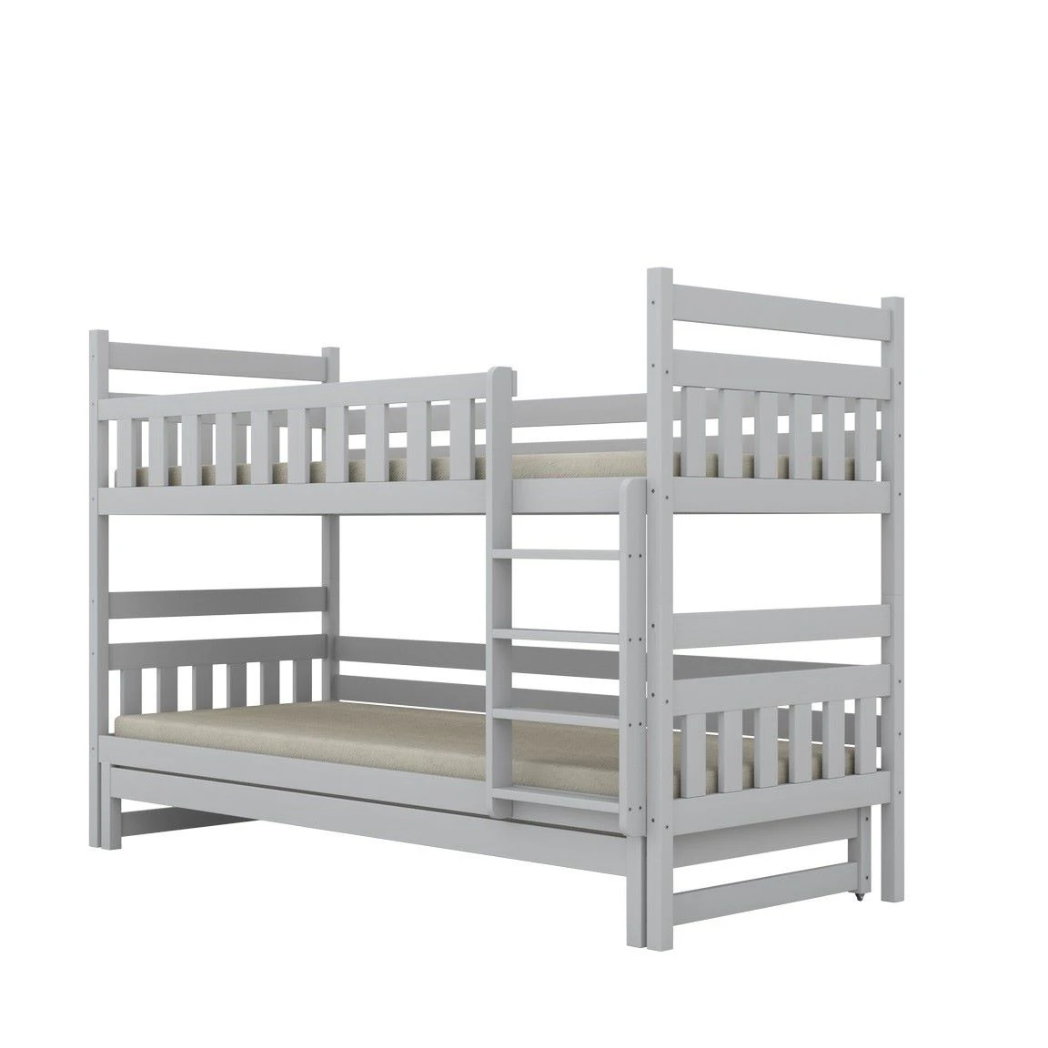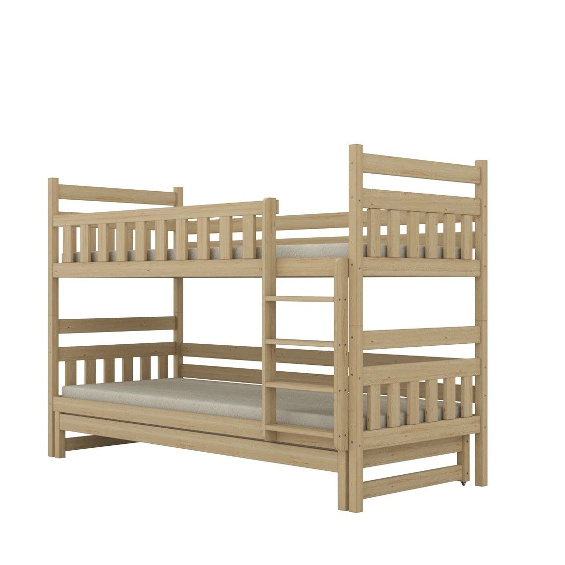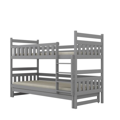 Drewniane łóżko piętrowe Lumo z wysuwanym trzecim spaniem