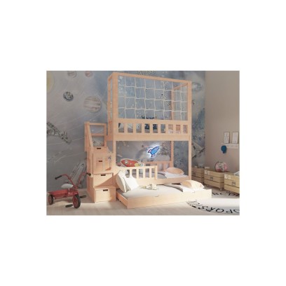 Łóżko piętrowe z panelem sznurkowym, schodki