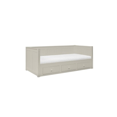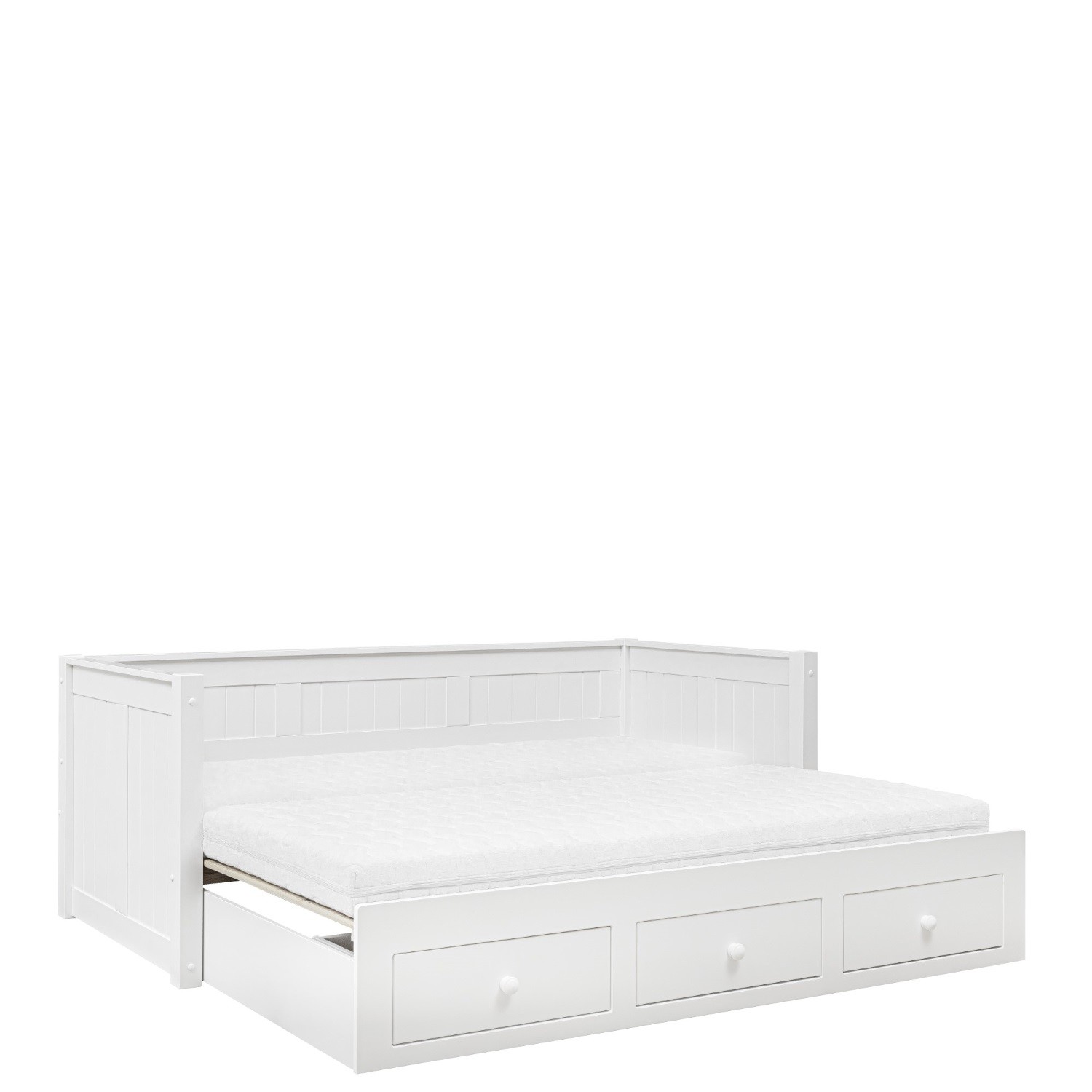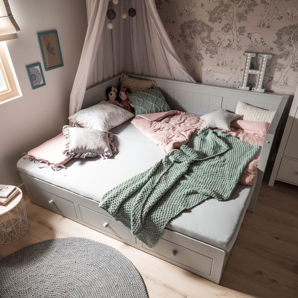 Łóżko rozkładane Dessi to mebel, który idealnie wpisuje się w stylistykę kolekcji Collet. Delikatne frezowania na bokach i panelach tylnych oraz drewniane uchwyty szuflad nawiązują do łóżek i komód Collet, dzięki czemu Dessi możesz śmiało zestawić z biurkiem Collet, komodą Collet czy szafką nocną Collet, tworząc spójny, skandynawski pokój dla dziewczynki.