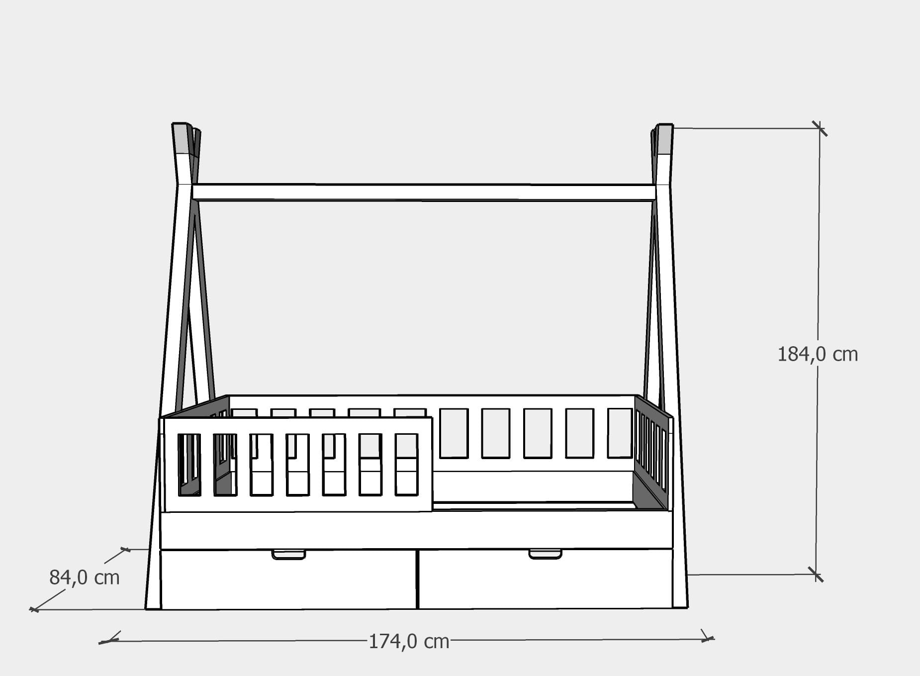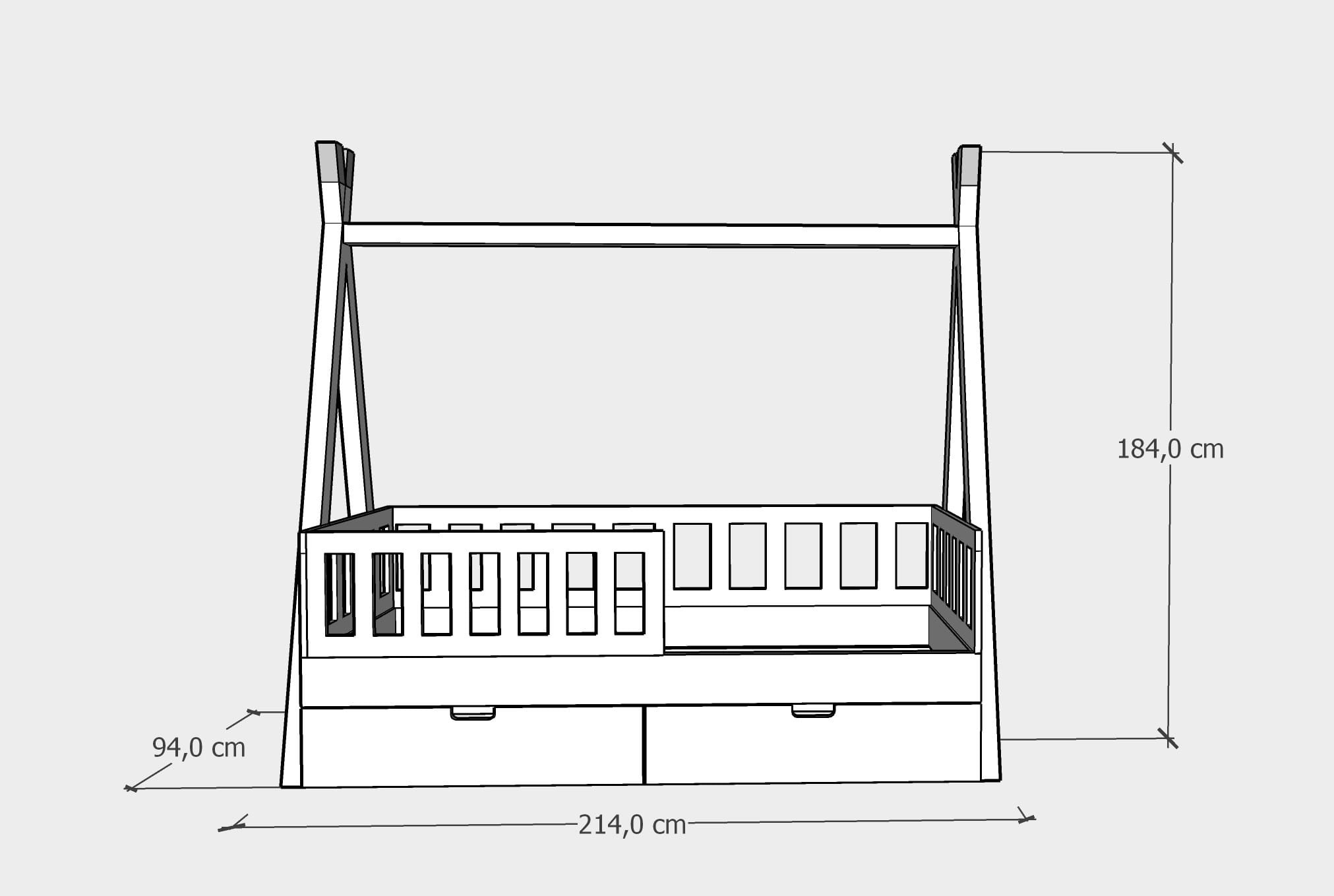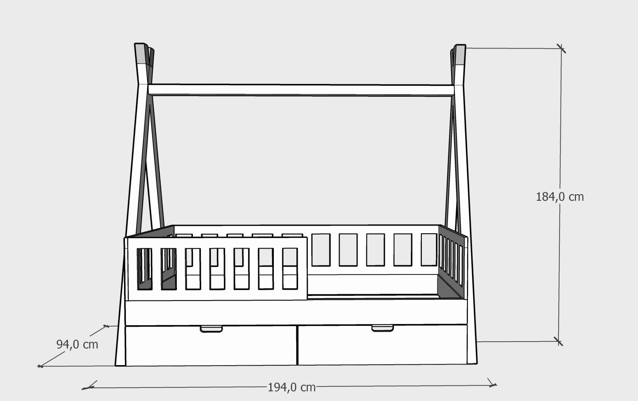 Łóżko tipi z szufladami - wymiary