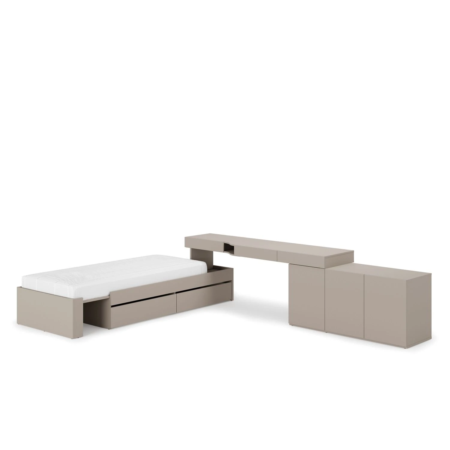 To zintegrowany zestaw łączący łóżko, biurko i szafki w jedną harmonijną bryłę – idealną dla tych, którzy cenią porządek, wygodę i nowoczesny design.