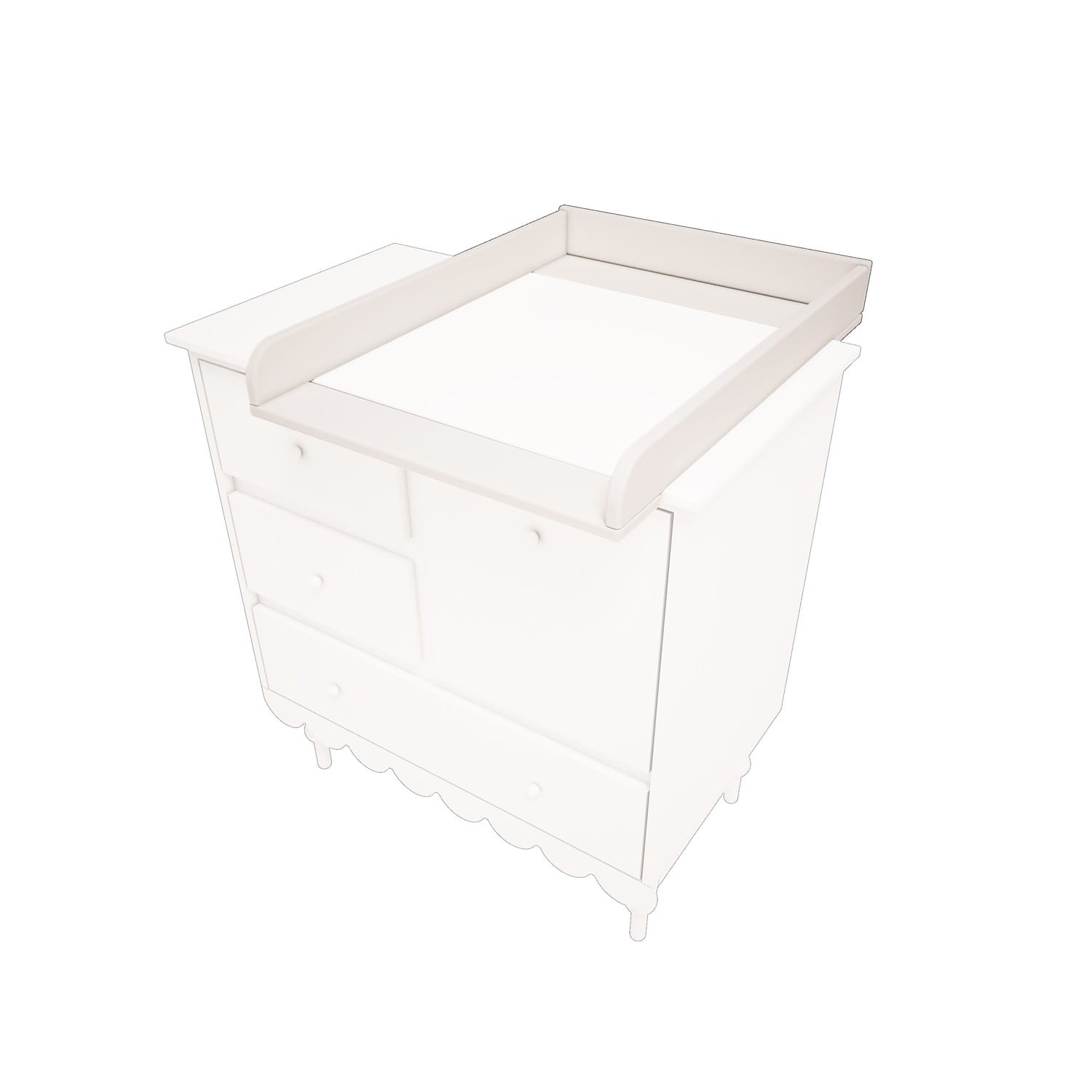 Nakładka na komodę Babushka biała to elegancki i bezpieczny element wyposażenia dziecięcego pokoju, który pozwala zamienić klasyczną komodę w wygodne stanowisko do przewijania maluszka. W połączeniu z miękkim materacykiem lub kocykiem tworzy komfortową przestrzeń do codziennej pielęgnacji dziecka.