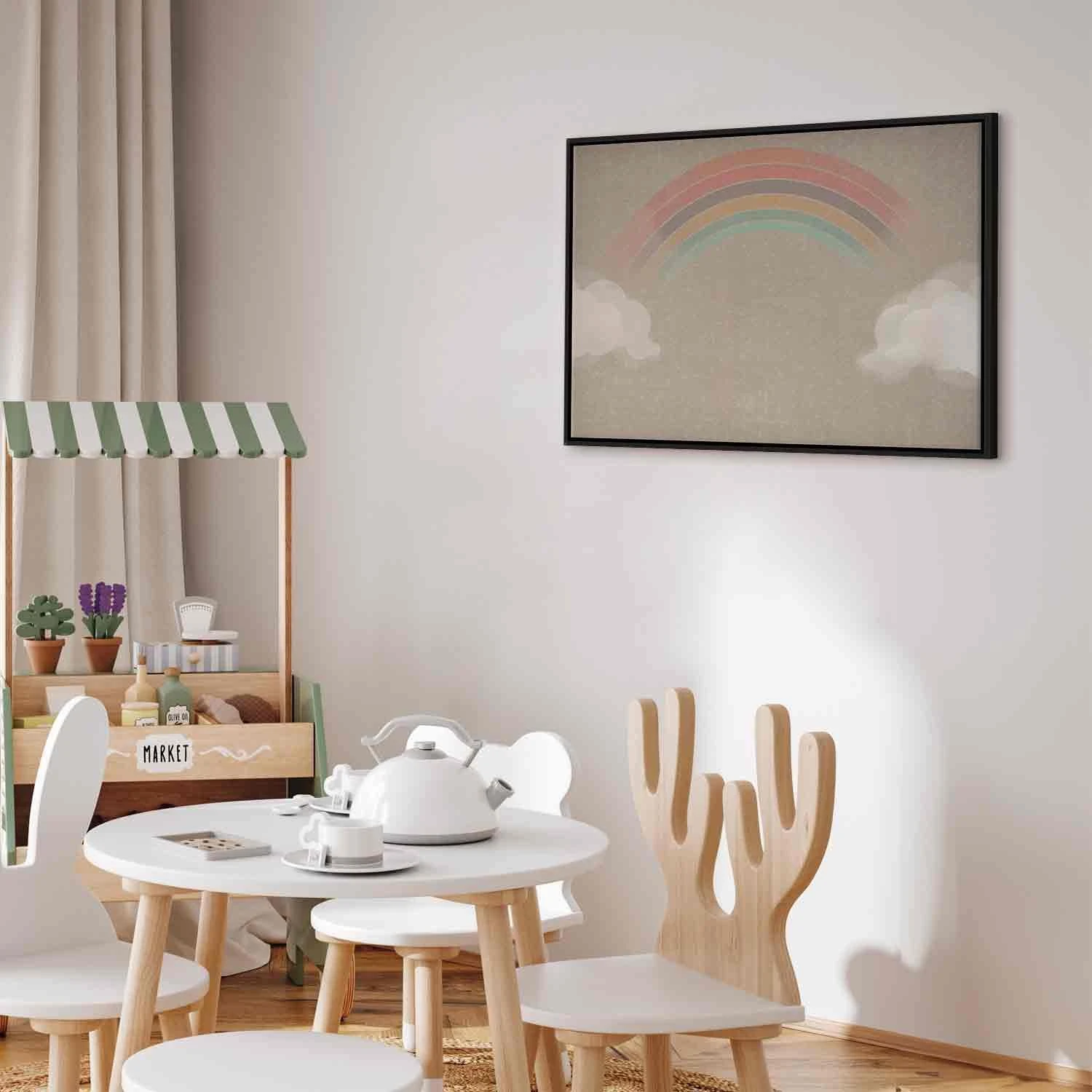 Niepowtarzalne obrazy z estetycznymi motywami są idealnym dopełnieniem eleganckiej aranżacji. Przy odrobinie kreatywności można je z łatwością dopasować do wnętrza urządzonego w każdym stylu. Obraz na płótnie "Obraz - Deszczowy czerwiec - kolorowa tęcza wychodząca z chmur na jasnym tle" to unikalny element dekoracyjny który jest niemal uniwersalny. Przypadnie do gustu każdemu, kto poszukuje oryginalnych ozdób, aby dopełnić swoją aranżację. Umieść go w swoim wnętrzu, a przekonasz się, że jest już kompletne i nie potrzebujesz już innych dodatków. Nie musisz się obawiać o jakość i wygląd swojej dekoracji. Dostępne w ofercie obrazy na płótnie wiernie odwzorowują detale. Odpowiednio dostosowana rozdzielczość druku gwarantuje intensywność kolorów oraz ostrość prezentowanego motywu. Tego typu produkty to doskonałe rozwiązanie, jeśli wciąż narzekasz na puste miejsce na ścianie i zastanawiasz się, jak je wypełnić. To stylowy element dekoracyjny, dzięki któremu wnętrze staje się wyjątkowo przytulne.