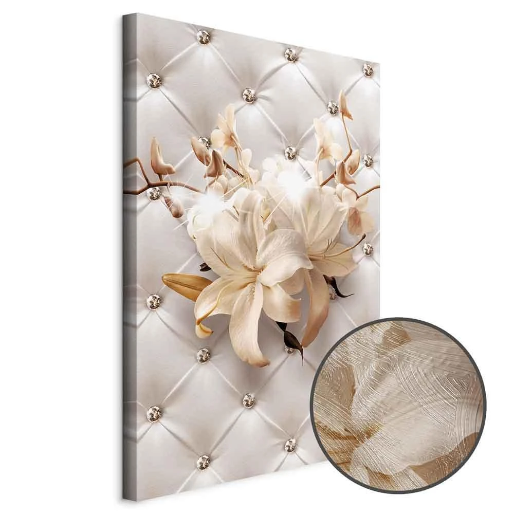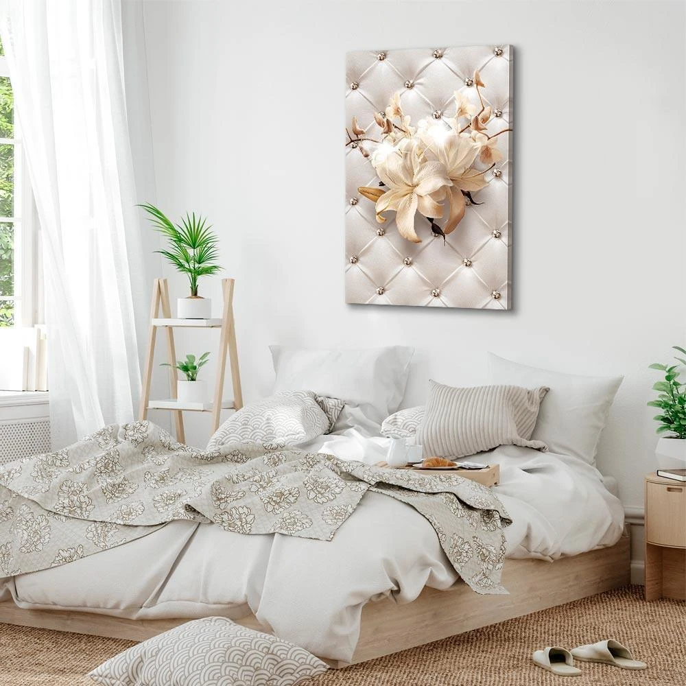 Niepowtarzalne obrazy z estetycznymi motywami są idealnym dopełnieniem eleganckiej aranżacji. Przy odrobinie kreatywności można je z łatwością dopasować do wnętrza urządzonego w każdym stylu. Obraz na płótnie "Obraz - Diamentowe lilie (1-częściowy) pionowy" to unikalny element dekoracyjny który jest niemal uniwersalny. Przypadnie do gustu każdemu, kto poszukuje oryginalnych ozdób, aby dopełnić swoją aranżację. Umieść go w swoim wnętrzu, a przekonasz się, że jest już kompletne i nie potrzebujesz już innych dodatków. Nie musisz się obawiać o jakość i wygląd swojej dekoracji. Dostępne w ofercie obrazy na płótnie wiernie odwzorowują detale. Odpowiednio dostosowana rozdzielczość druku gwarantuje intensywność kolorów oraz ostrość prezentowanego motywu. Tego typu produkty to doskonałe rozwiązanie, jeśli wciąż narzekasz na puste miejsce na ścianie i zastanawiasz się, jak je wypełnić. To stylowy element dekoracyjny, dzięki któremu wnętrze staje się wyjątkowo przytulne.