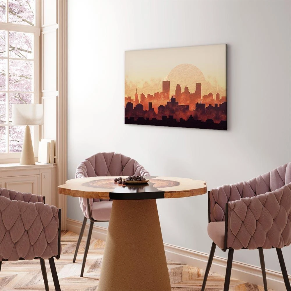 Uważasz, że to, czego brakuje w Twoim domu, to właśnie obrazy drukowane na płótnie ? Jeśli tak, otrzymane od nas zamówienie spełni Twoje oczekiwania w 100%. Stylowy oraz odpowiednio dopasowany obraz na płótnie "Obraz - Żar miasta (1-częściowy) szeroki" może z powodzeniem zająć centralne miejsce w pomieszczeniu. Będzie przykuwał uwagę, a jednocześnie idealnie współgrał z pozostałymi elementami wyposażenia. Takie dekoracje ścienne stworzą piękny duet z niewielkim stolikiem kawowym, delikatną toaletką, Twoim ulubionym fotelem czy innym ważnym meblem w pokoju. Wykorzystasz je tak, jak zechcesz, tworząc niepowtarzalną aranżację. Oferujemy obrazy drukowane na płótnie z zadrukowanymi bokami. Nie potrzebujesz więc dodatkowej ramy, to dekoracje gotowe do zawieszenia. Bez względu na to, na jaki format się zdecydujesz, wszystkie szczegóły będą odpowiednio odtworzone, a kolory głębokie i przyciągające wzrok.
