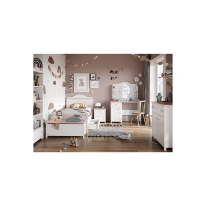 Stwórz przestrzeń, która rośnie razem z Twoją córką. Pokój dziewczynki Luna to starannie dobrany zestaw mebli w kolorze bieli z delikatnym akcentem pudrowego różu. Dzięki połączeniu klasycznego stylu i funkcjonalnych rozwiązań, pokój idealnie sprawdzi się zarówno w pierwszych latach szkoły podstawowej, jak i w okresie nastoletnim.