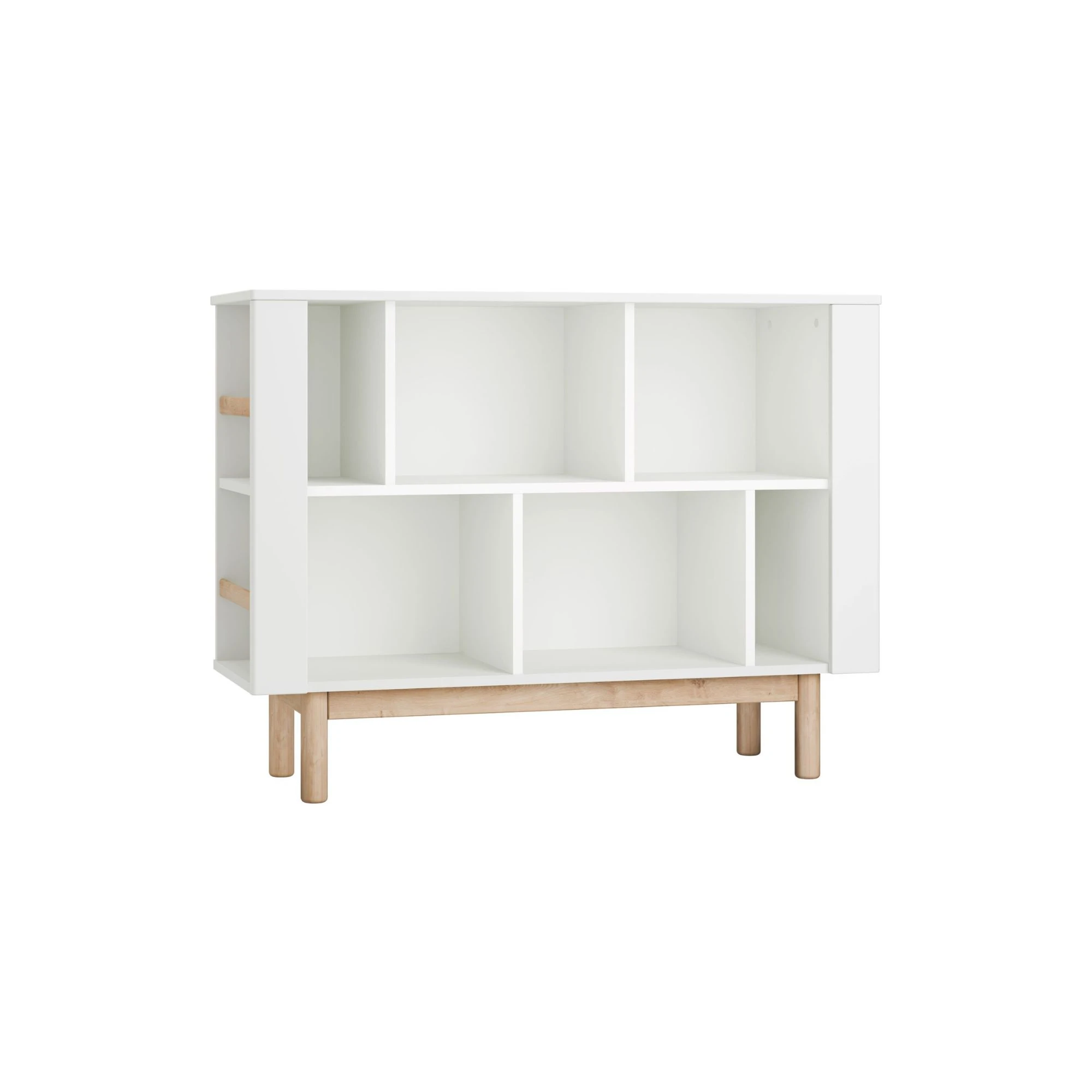 Regał Miloo niski biały z półkami na książki i drobiazgi