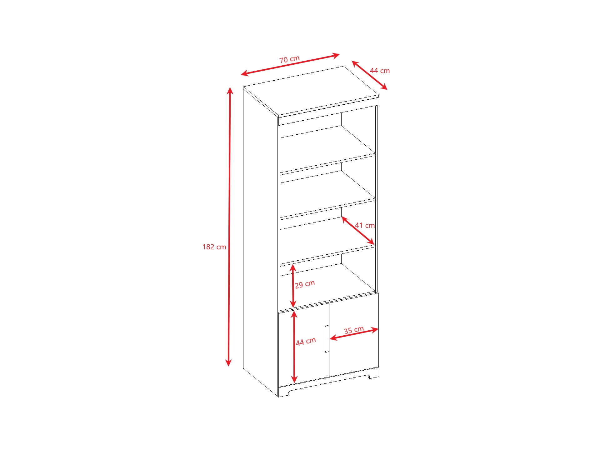 - wysokość otwartej półki: 29 cm