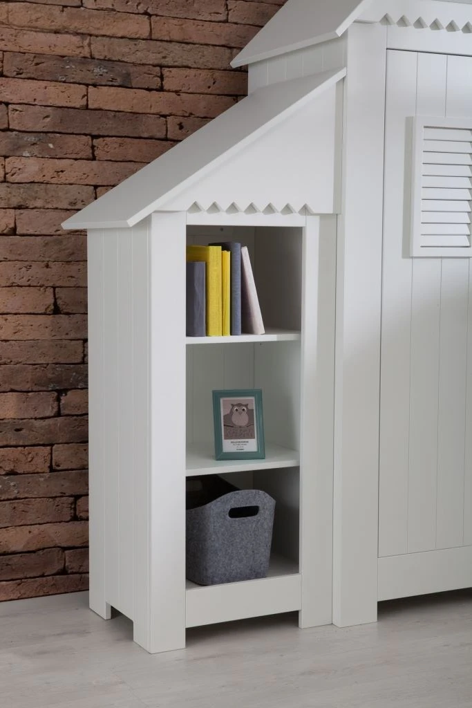W połączeniu z pozostałymi meblami w kształcie domków tworzy harmonijny zestaw o spójnym, przytulnym charakterze.