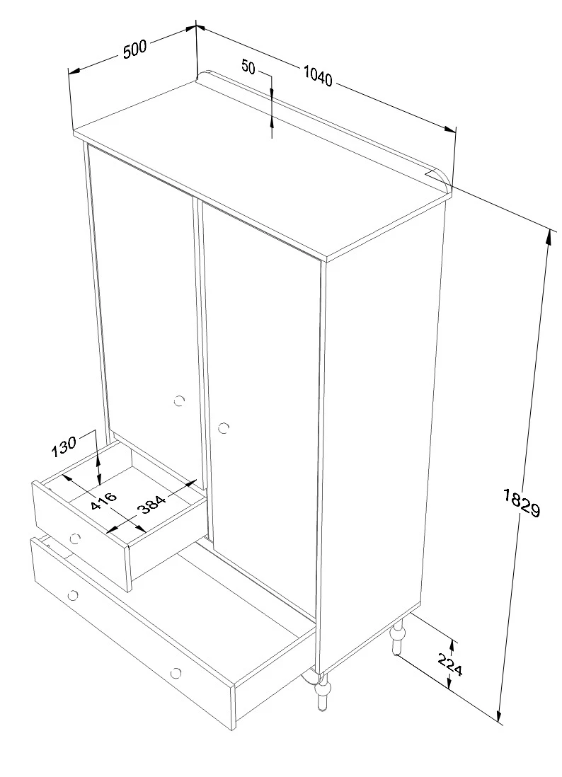 Dodatkowo, na dole umieszczono dwie pojemne szuflady na prowadnicach z mechanizmem cichego domyku, które pomieszczą bieliznę, pościel lub tekstylia.