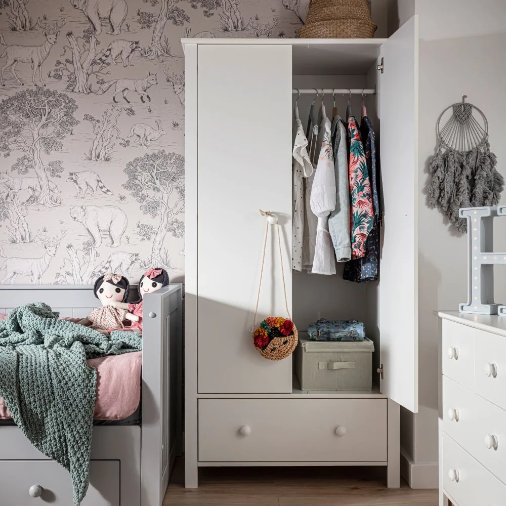 Szafa dwudrzwiowa Collet to mniejsza siostra trzydrzwiowej szafy z kolekcji Collet, idealna do ustawienia przy łóżku lub w węższej wnęce. Zachowuje ten sam skandynawski charakter – prostą formę, delikatne gałki i pastelowe wykończenie – ale w bardziej kompaktowych wymiarach. To praktyczna szafa dla dziewczynki, która poradzi sobie zarówno z codzienną garderobą, jak i ulubionymi dodatkami.