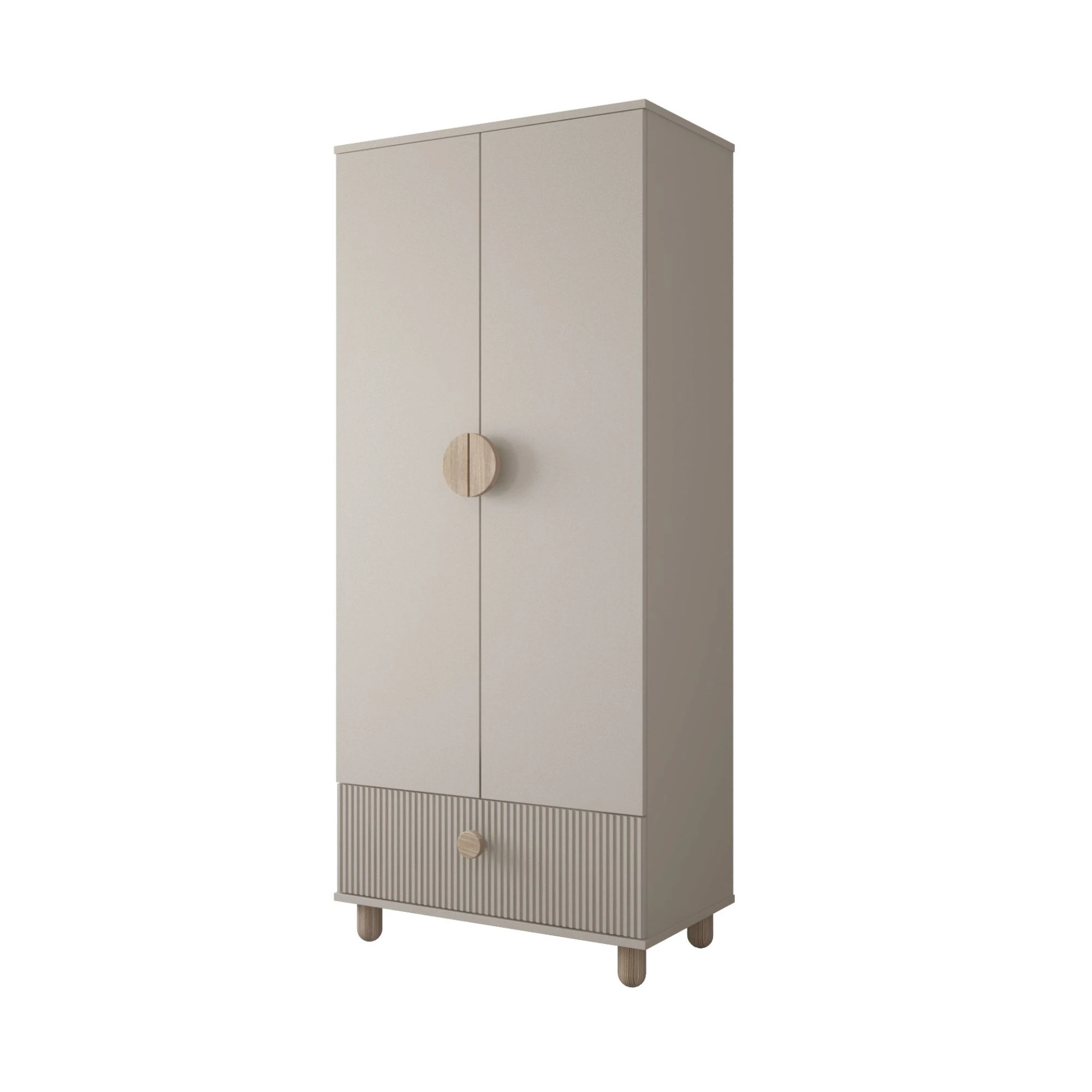 Neutralny, kaszmirowy kolor działa kojąco i sprzyja wyciszeniu, a jednocześnie wprowadza do pokoju elegancję i ciepło. Szafa doskonale wpisuje się w filozofię neuroestetyki – jej stonowana kolorystyka i proste formy wspierają koncentrację i poczucie bezpieczeństwa dziecka.