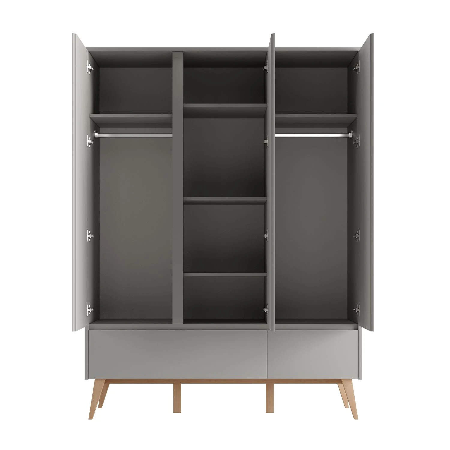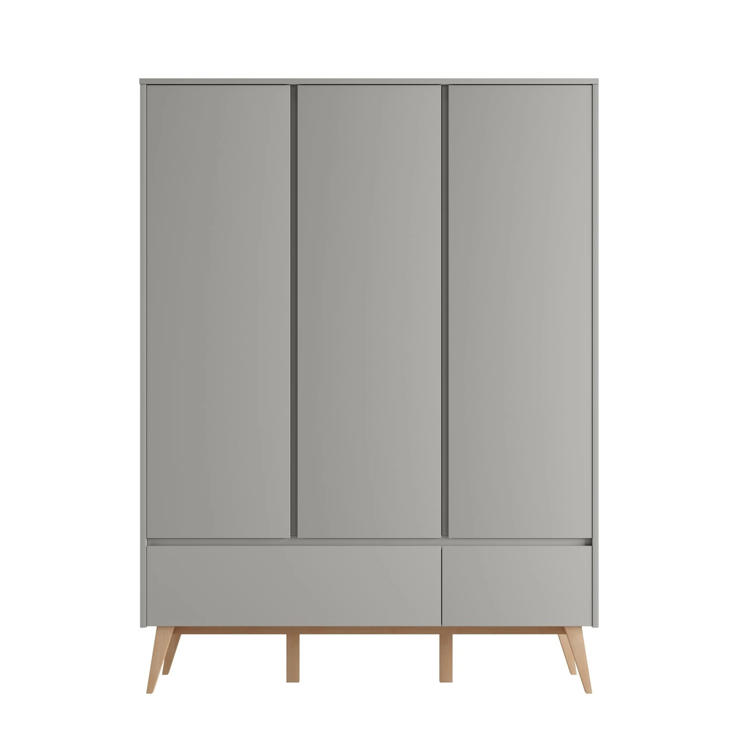 Szarość to kolor, który porządkuje przestrzeń i pasuje do każdego etapu dorastania. W połączeniu z naturalnym drewnem bukowym tworzy ponadczasowy efekt wizualny – subtelny, ale wyrafinowany. Prosta bryła i smukłe nogi sprawiają, że mimo swojej pojemności, szafa prezentuje się lekko i nowocześnie. Doskonale odnajdzie się zarówno w pokoju dziecka, jak i nastolatka, niezależnie od stylu i kolorystyki wnętrza.