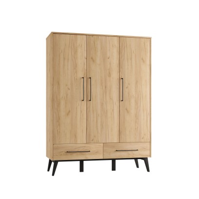 Szafa trzydrzwiowa Retro to elegancki i funkcjonalny mebel, który pomaga utrzymać harmonię i porządek w pokoju dziecka. Zapewnia mnóstwo miejsca do przechowywania ubranek, pościeli i akcesoriów, a dzięki ponadczasowej stylistyce w naturalnym odcieniu dębu pięknie komponuje się z pozostałymi elementami z kolekcji Retro.