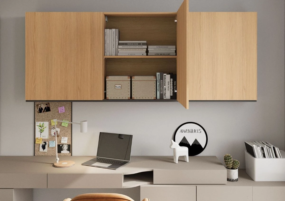 Szafka świetnie sprawdza się nad biurkiem lub łóżkiem, gdzie zapewnia dodatkową przestrzeń bez zabierania powierzchni użytkowej. To idealne rozwiązanie do niewielkich pokoi młodzieżowych, w których ważna jest lekkość i ergonomia aranżacji.